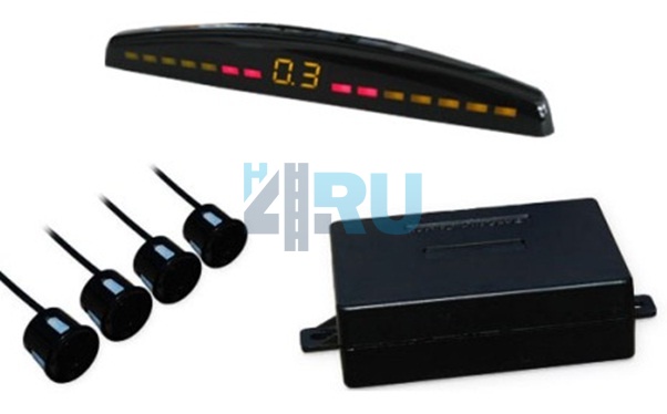 Парковочный радар, 4 серебристых датчика, монитор LED118
