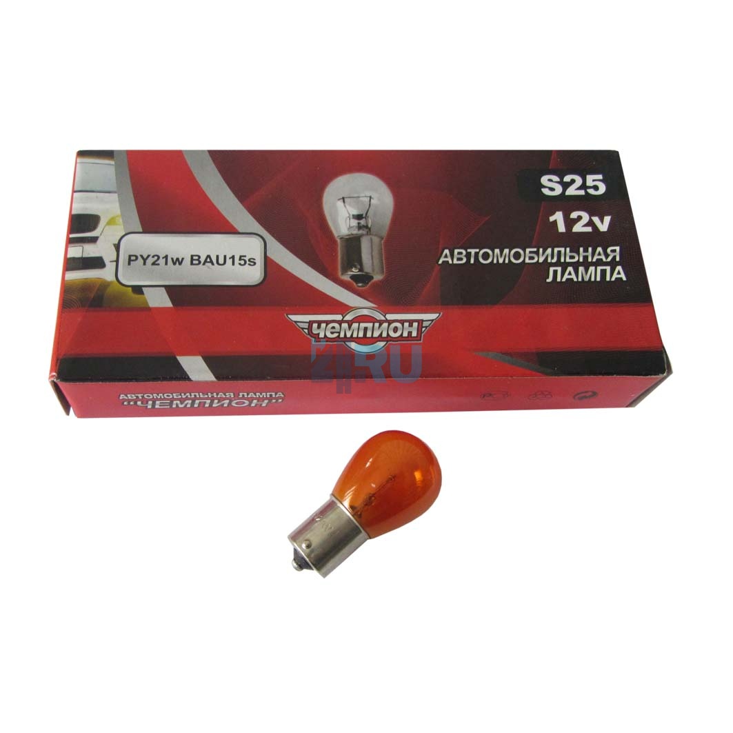 Автолампа ЧЕМПИОН PY21W 12V21W BAU15S желтая (смещенный цоколь)