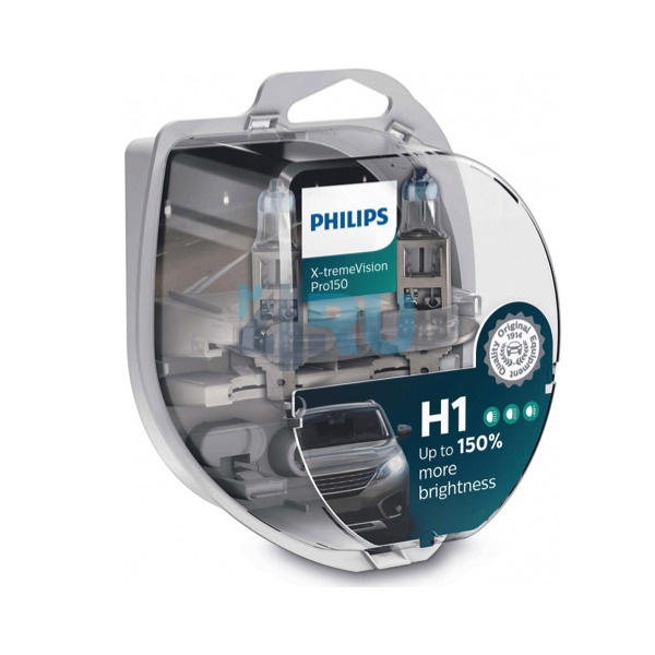 Автолампа PHILIPS H1 12V 55W P14,5s +150% X-treme Vision PRO150 (12258XVP150), EUROBOX-2шт