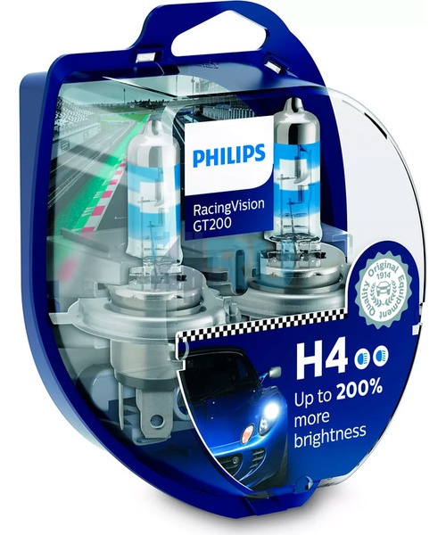 Автолампа PHILIPS H4 12V 60/55W +200% Racing Vision GT200 (12342RGT), EUROBOX-2шт