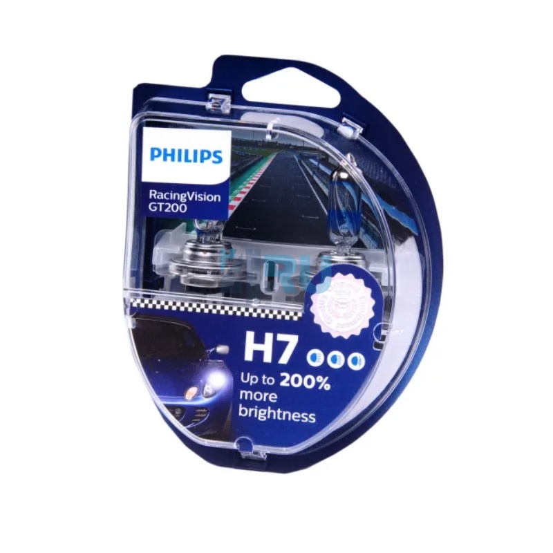 Автолампа PHILIPS H7 12V 55W +200% Racing Vision GT200 (12972RGT), EUROBOX-2шт