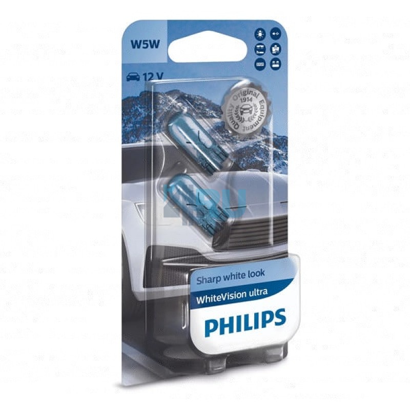 Автолампа PHILIPS W5w 12V 5W б/ц White Vision Ultra (12961WVUB2), на блистере-2шт
